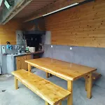 De keuken van Beleza Da Fazenda Villa is uitgerust met een koffie/theezetapparaat, een koelkast en een oven, en is voorzien van een eethoek buiten.